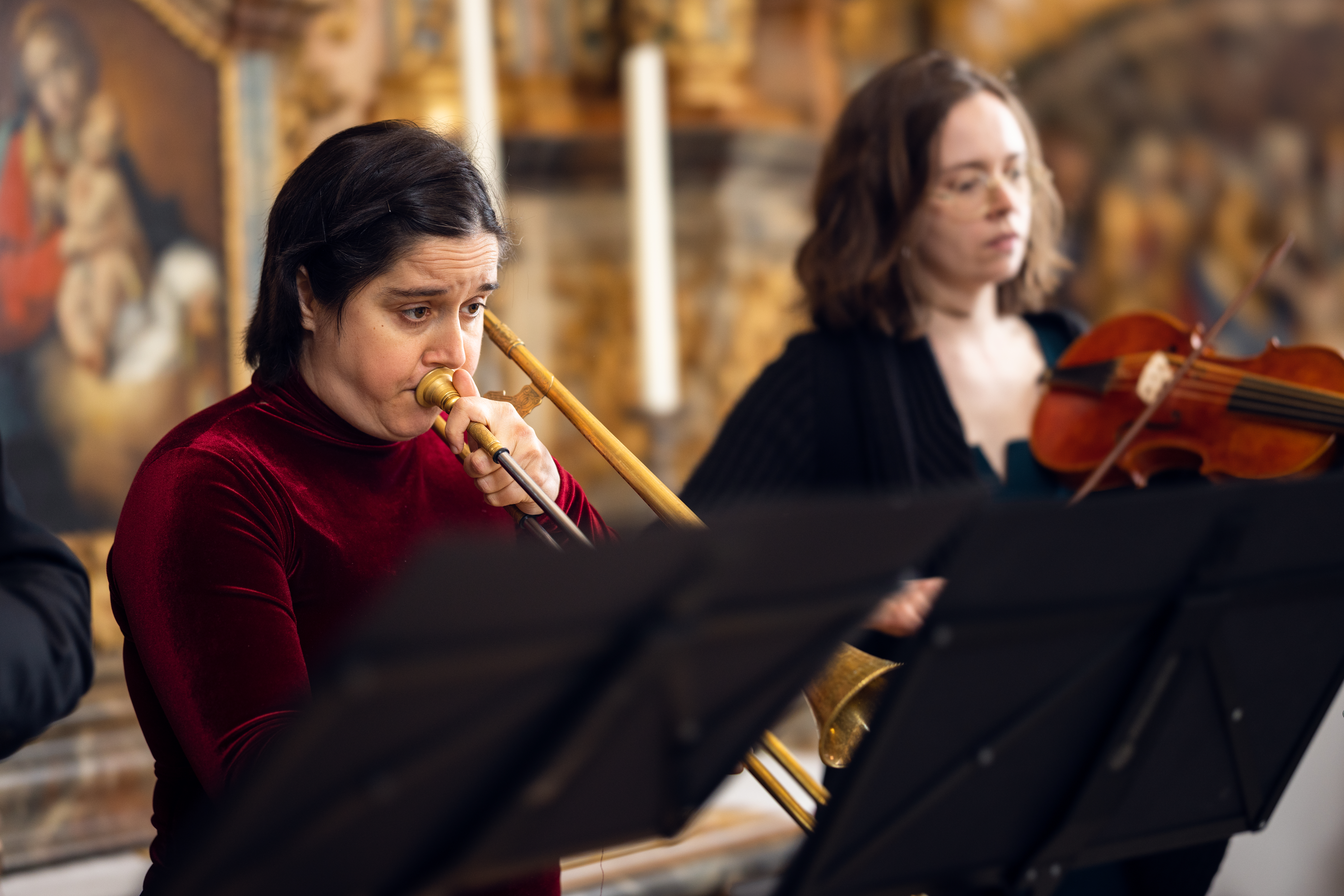 A leading specialist of historical trombones and critically-acclaimed conductor, Maximilien is a member of I Fedeli, Le Consort laurentien and canticum trombonorum, and has performed with the Freiburger Barockorchester, Akamus, Concerto Palatino, Collegium Vocale Gent, Les Cornets Noirs, I Gemelli, The Toronto Consort and the Zürich Opera, among others. He is lecturer for Baroque Trombone at the University of the Arts Bremen. As a scholar, he has notably presented his research on the monodies of Lodovico Viadana at the MedRen conference in 2019, and his edition of the complete works of Andreas Oswald is pending publication.